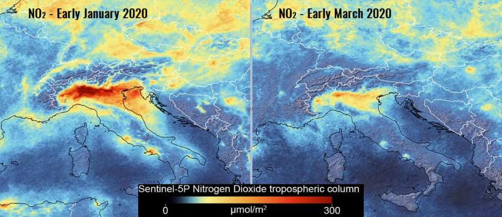 Pollution reduction over Italy (from ESA’s Sentinel-5 satellite)